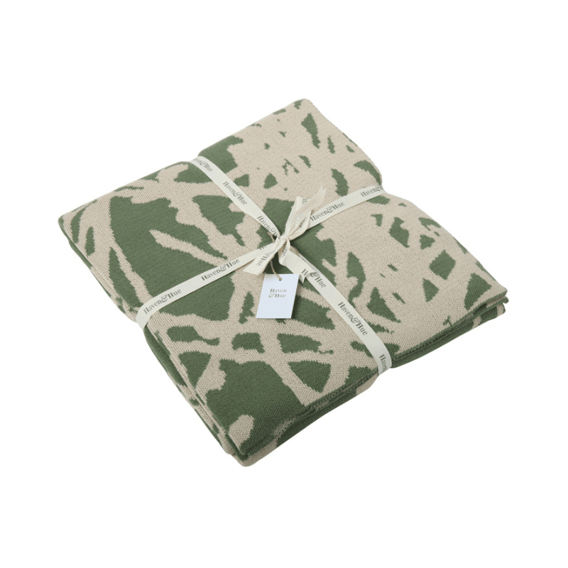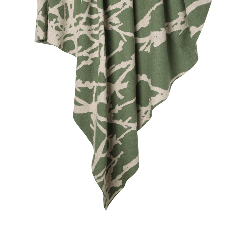 Branches 100% Cotton Knitted Throw | Green/Oat | 130x170cm | SA