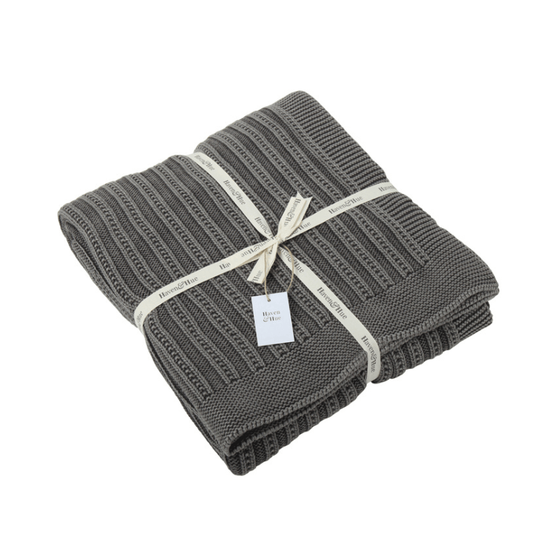 Shop Ridge Lines 100% Cotton Knitted Throw | Black Acid Wash | 130x170cm | SA