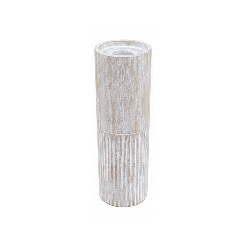 1 x Lumina Tall Ridged Mango Wood Candle Holder (White Wash, 7x7x20cm)