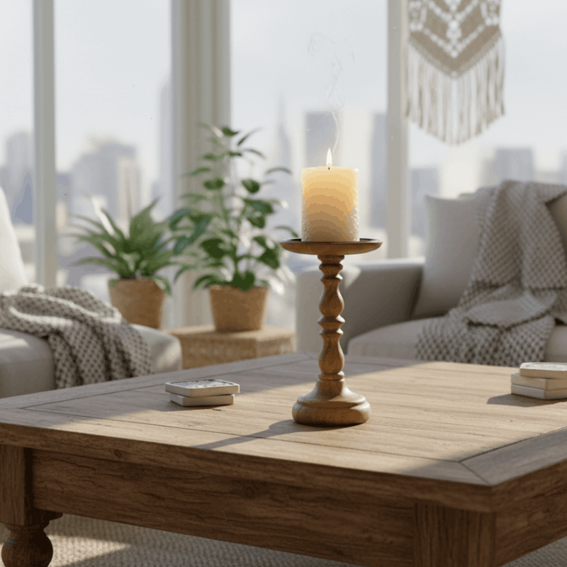 Malibu Mango Wood Candle Stand 36cm | Rustic Decor