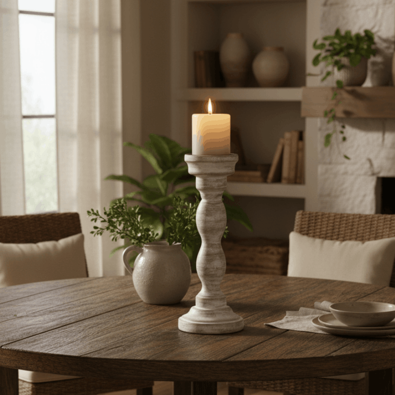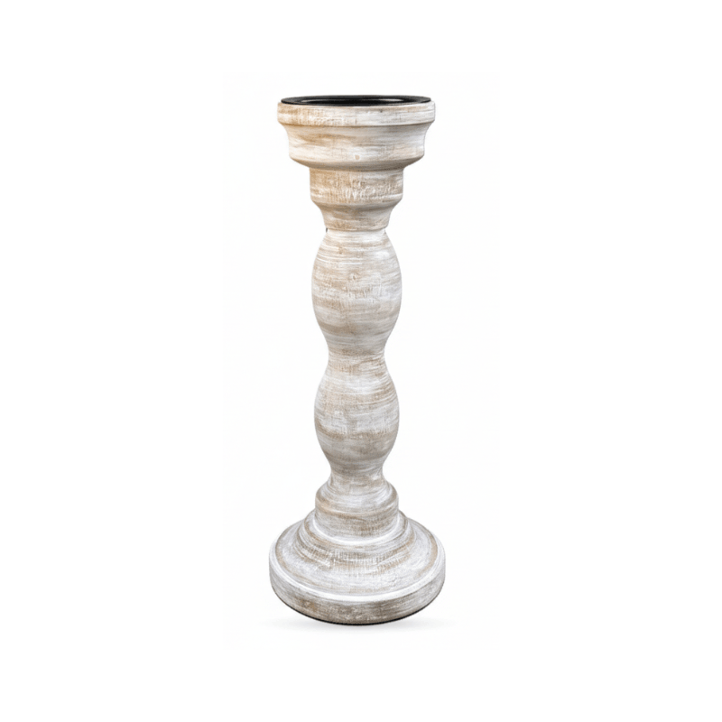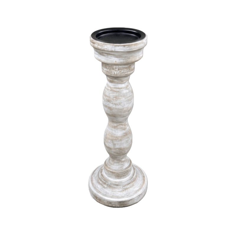 Savuti Mango Wood Candle Stand 45cm | White Wash Pillar Candle Base for South African Homes