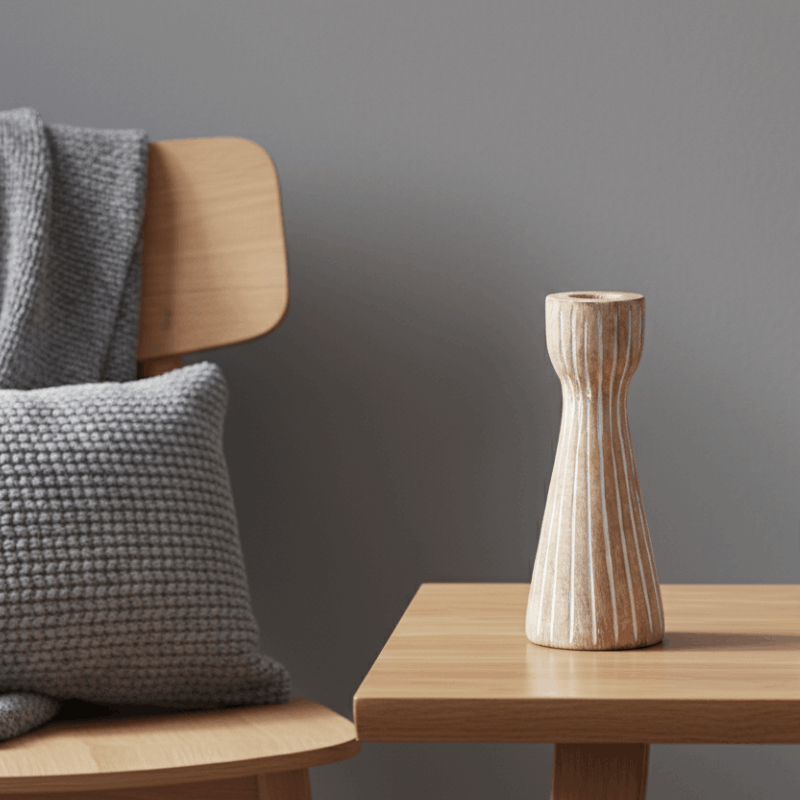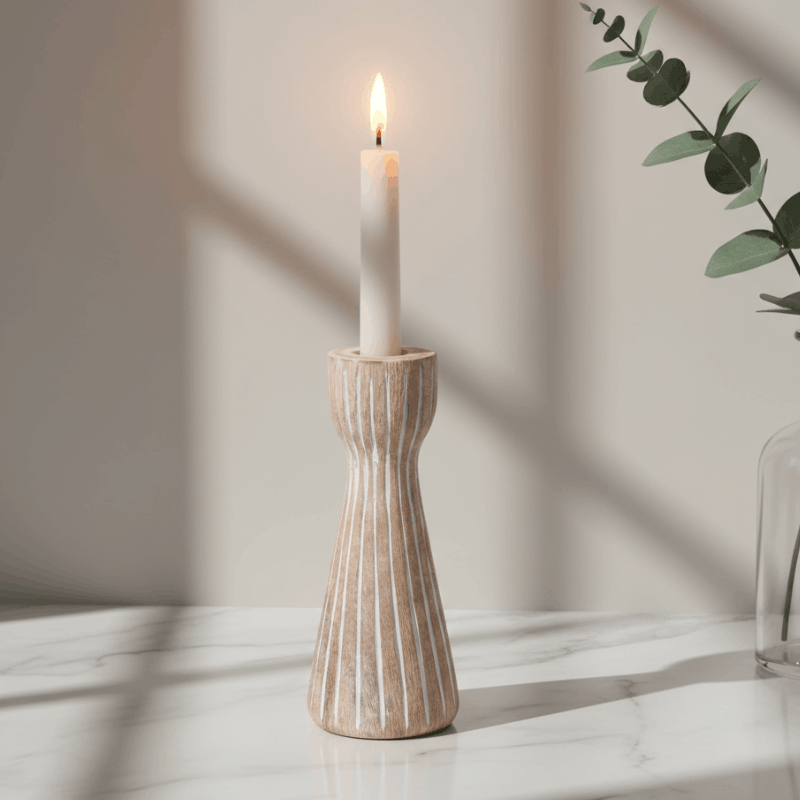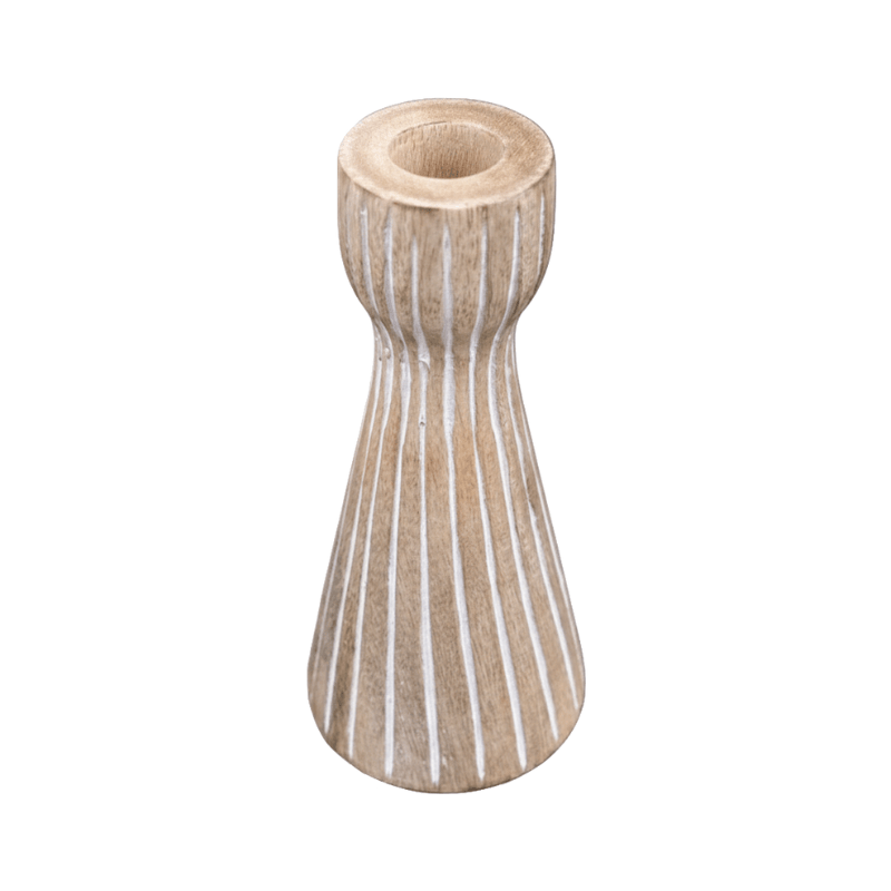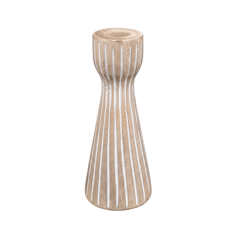 Serengeti Mango Wood Candle Holder 18cm | Natural & White | 7.5×7.5x18cm