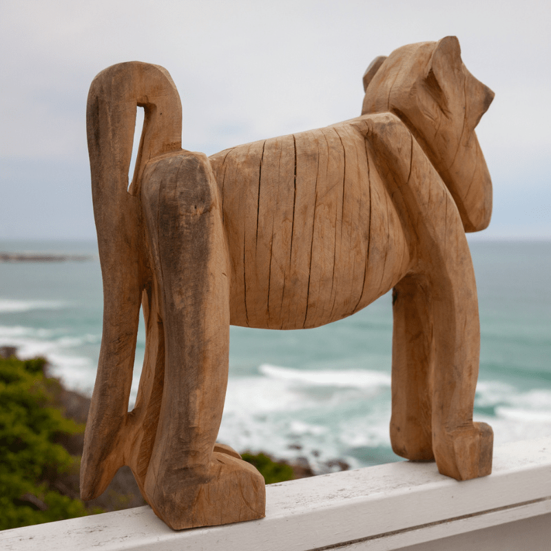 Bring home the charm of African artistry with our Baboon Wooden Sculpture in Natural Blue Gum Wood.