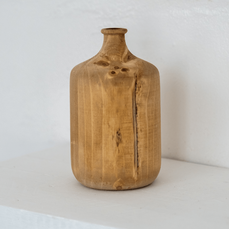 Indulge in the exquisite craftsmanship of our artisan-crafted Square Bottle Vase, skillfully wood turned in South Africa. Each vase is a testament to the captivating allure of nature, embracing its natural variations as essential elements of its aesthetic charm. Meticulously crafted from sustainably harvested wood, this vase not only radiates elegance but also embodies a commitment to eco-conscious practices.
