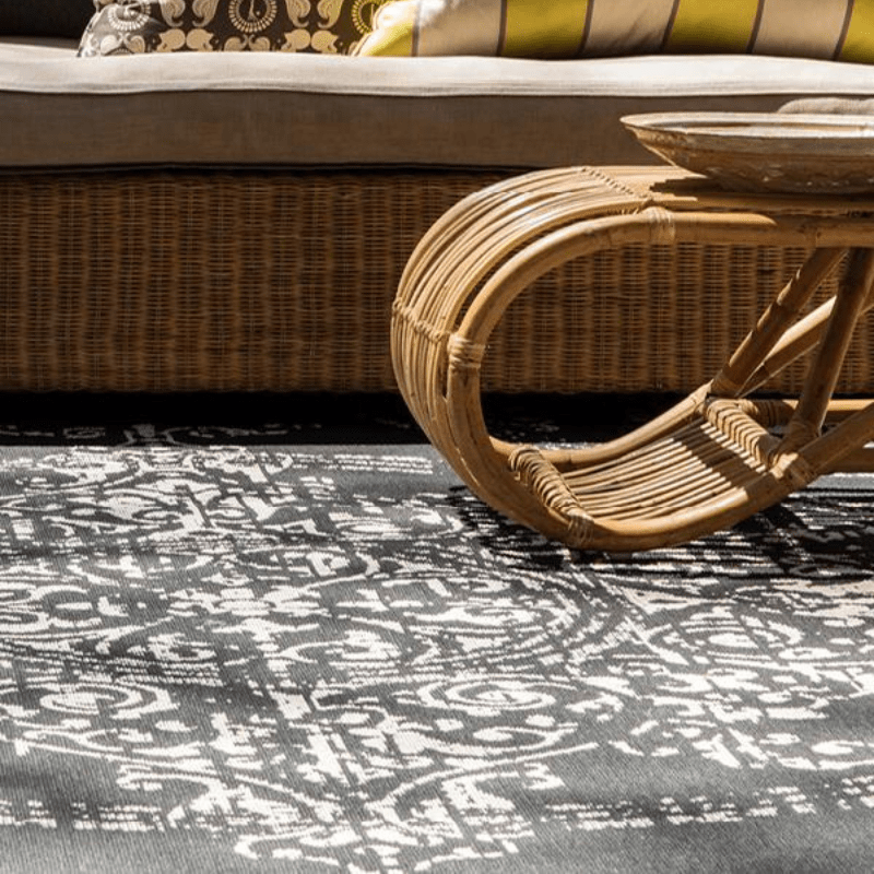 A flat woven rug with its premium UV resistant materials, protect the rug from the sun and can therefore be used indoors and outdoors.