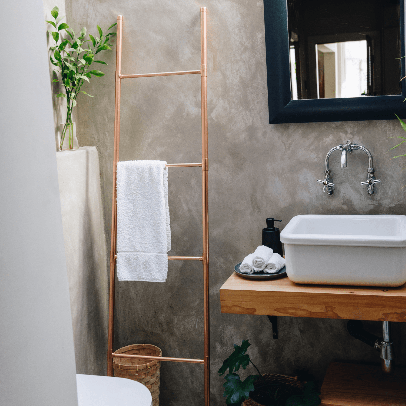 Transform your living space with the Copper Ladder, a statement piece that merges practicality with elegance, enhancing the ambiance of any room with its sleek design and functional appeal.