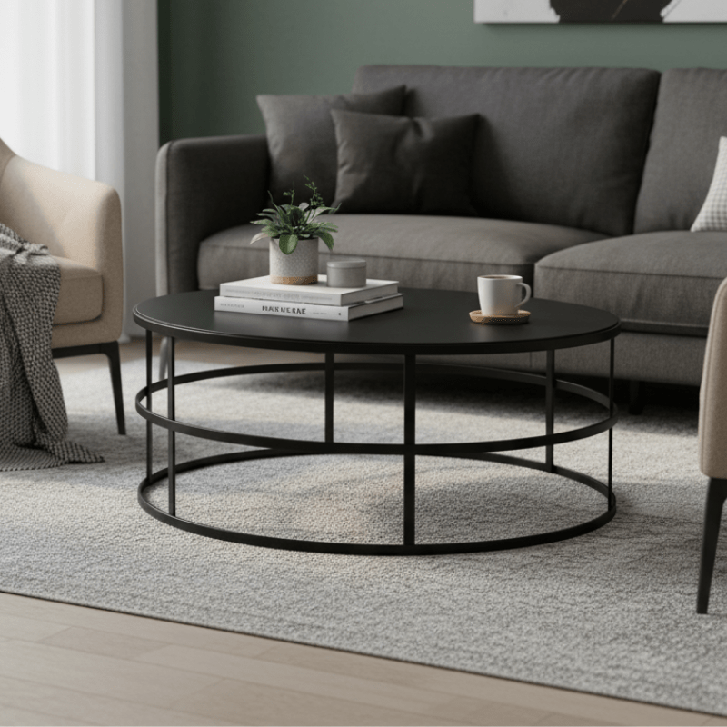 The Gymkhana Coffee Table with a fixed top is manufactured from mild steel, welded and powder coated in a black ferrograin colour.