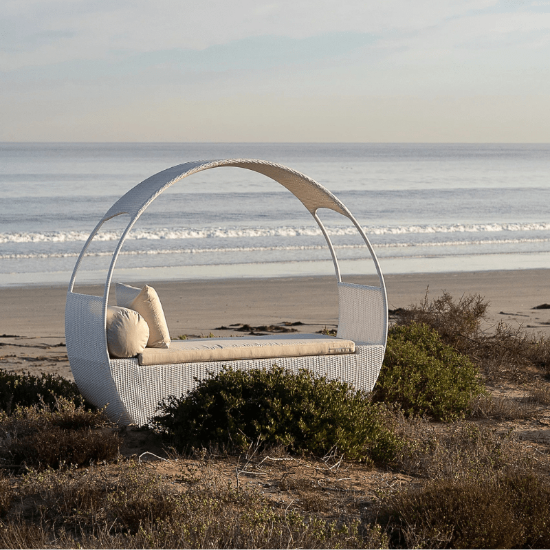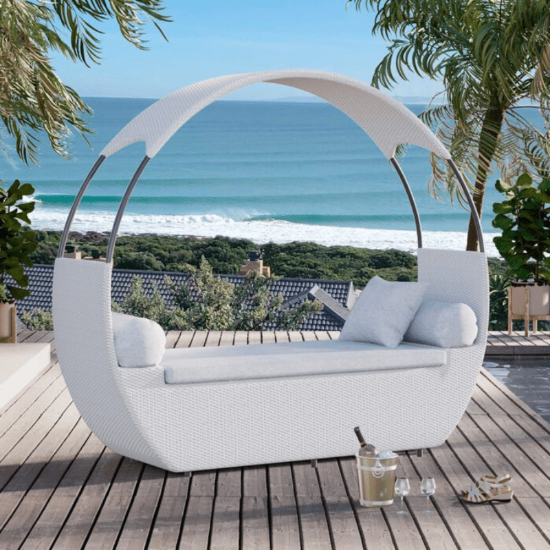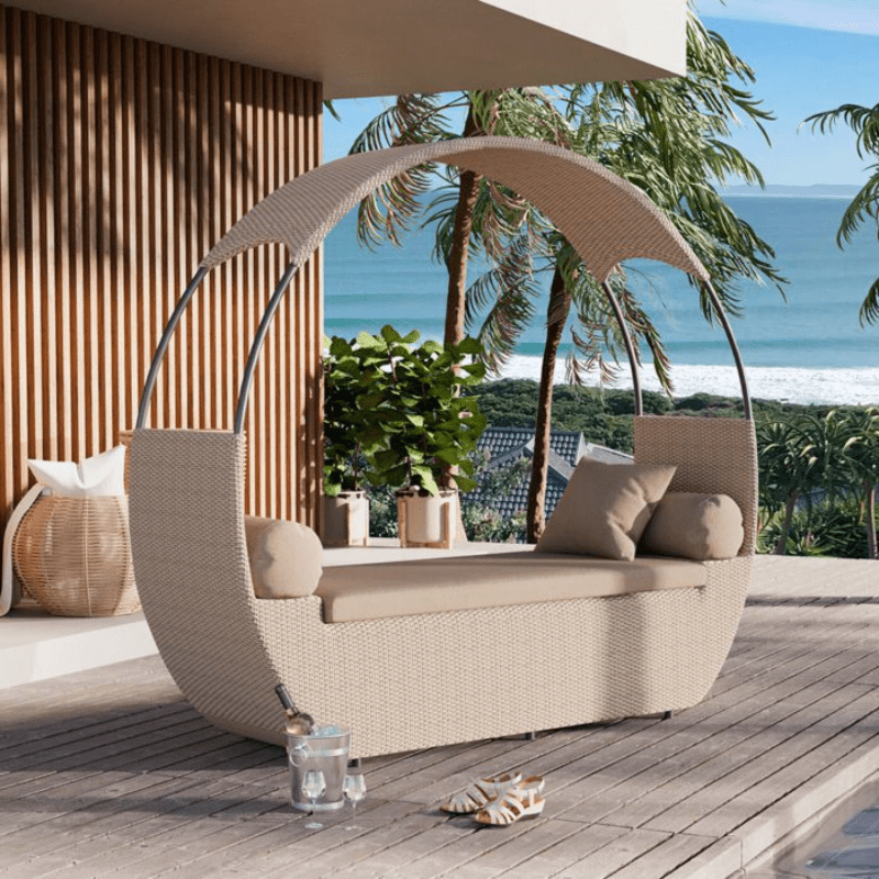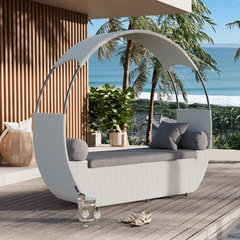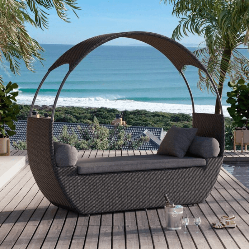 A stylish daybed crafted from fibrecane to suit any outdoor space and the perfect place to relax by the poolside.