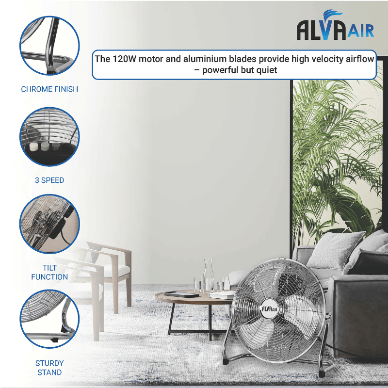50cm High Velocity Floor Fan – Chrome: Powerful Cooling for Home and Office