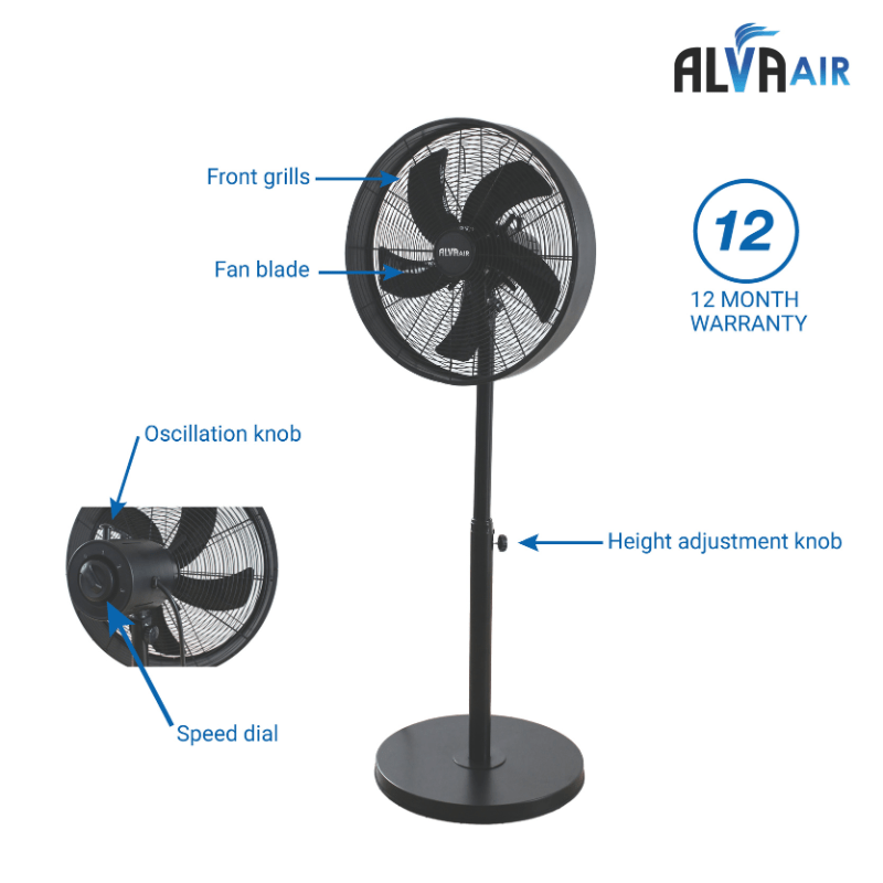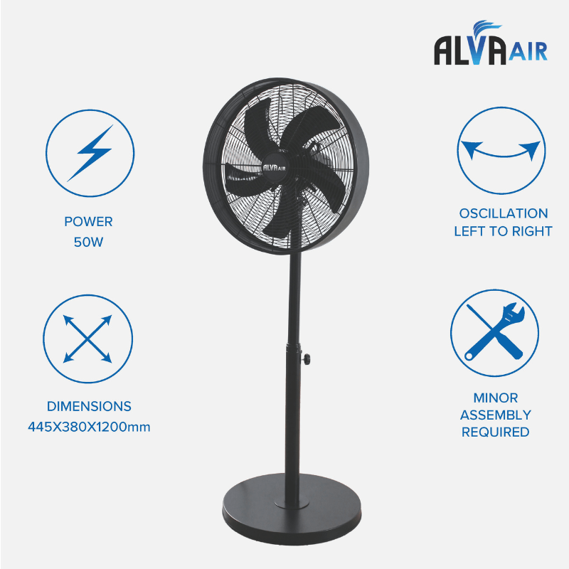 Alva Air 40cm Drum Pedestal Fan – Black