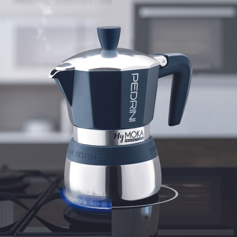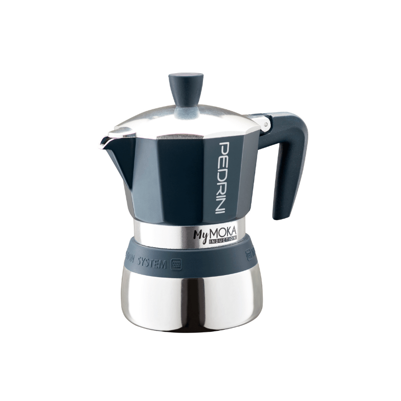 The Pedrini MyMoka Induction Coffee Maker in a sophisticated navy finish, designed to brew 3 cups of exquisite coffee, represents a harmonious blend of modern convenience and traditional Italian coffee craftsmanship. This coffee maker is not just an appliance; it’s an elegant statement piece in your kitchen that promises to redefine your coffee ritual.
