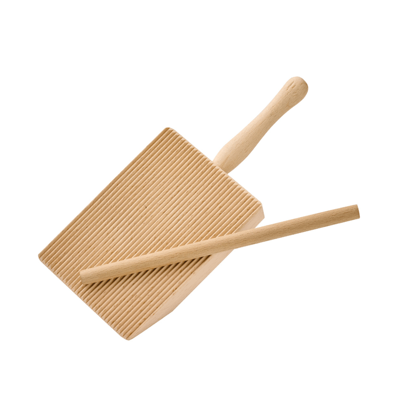- Includes round wooden dowel for shaping traditional garganelli pasta