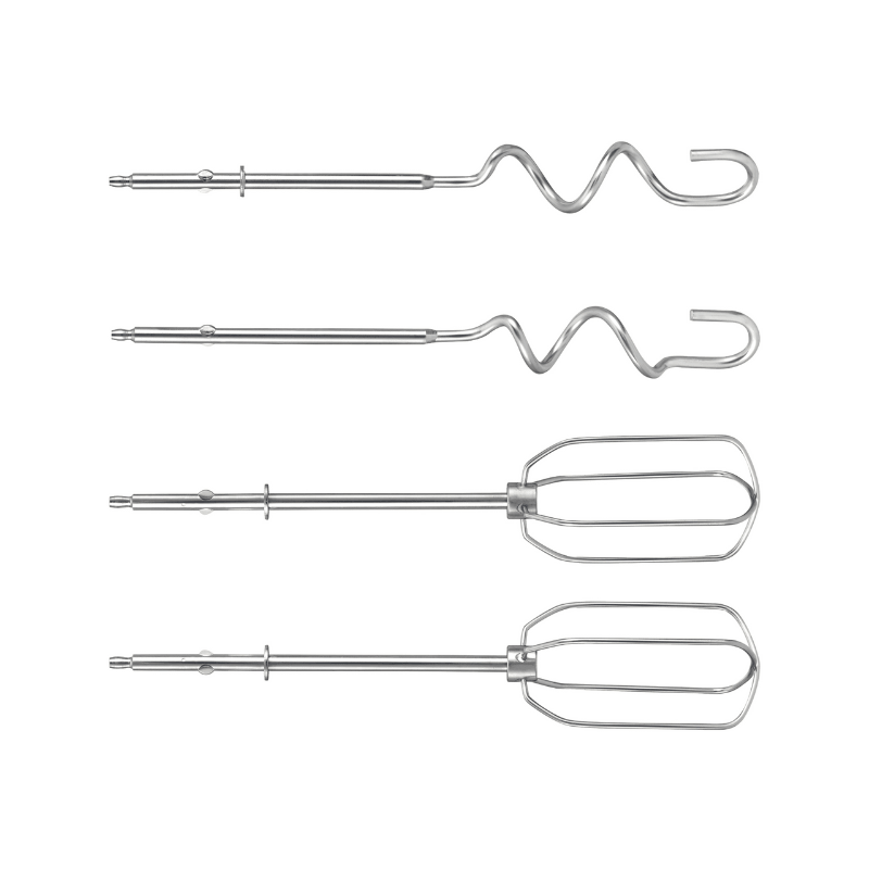 - Metal dough hooks for bread, pizza, and heavier dough.