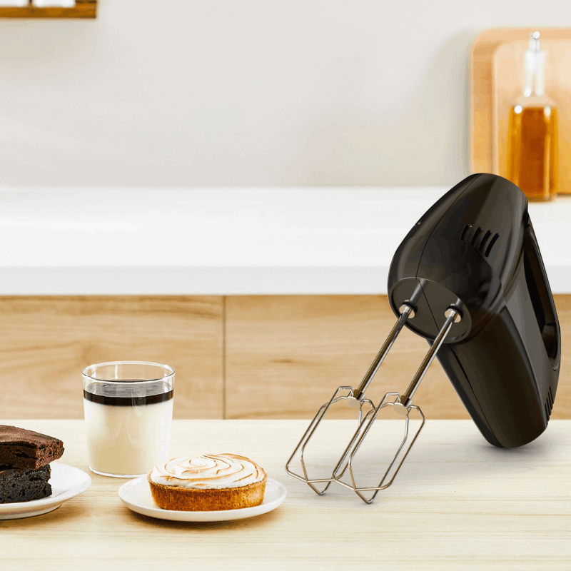 The 300W motor delivers power across 5 precise speeds + turbo boost for fine control from gentle folding to intensive kneading. The eject button releases attachments instantly with one touch—no messy hands during recipe switches. Lightweight black design with ergonomic grip reduces fatigue during long baking sessions.