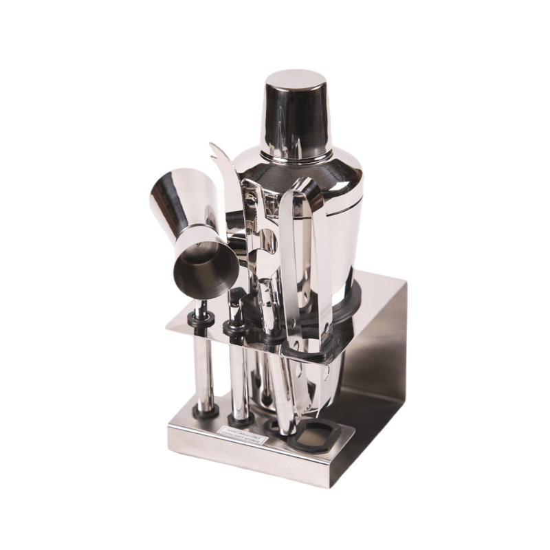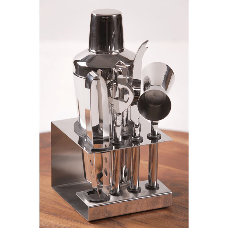 • Set includes: Shaker with strainer, jigger, stirrer, and tongs