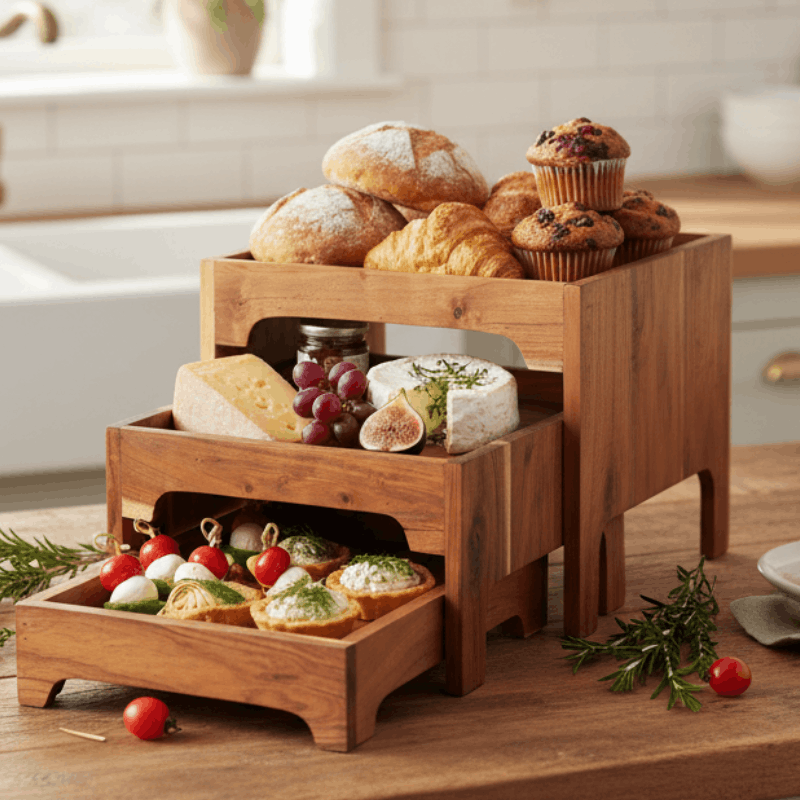 Transform your bakery counter, cafe table, or home buffet with our Acacia Food Display Racks 3PC. Crafted from acacia wood and finished with food-safe oil, these racks blend natural rustic beauty with professional durability. Ideal for South African bakers and caterers seeking premium food presentation racks South Africa that impress at markets, weddings, or daily service.