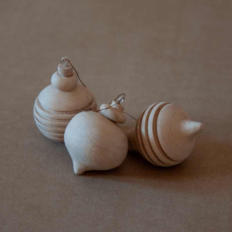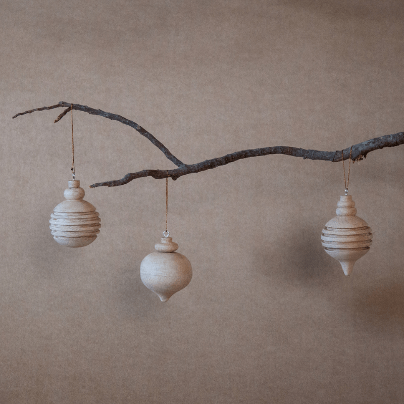 Beech Wood Ornament Set 3PC | Natural Christmas Decor