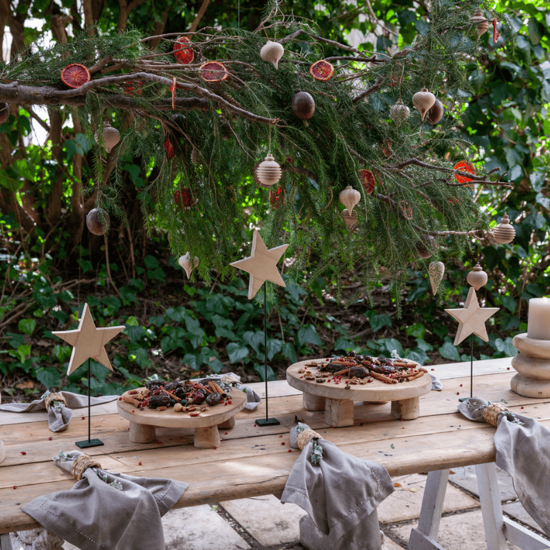 Pine Star on Stand Set 3PC | Festive Holiday Decor
