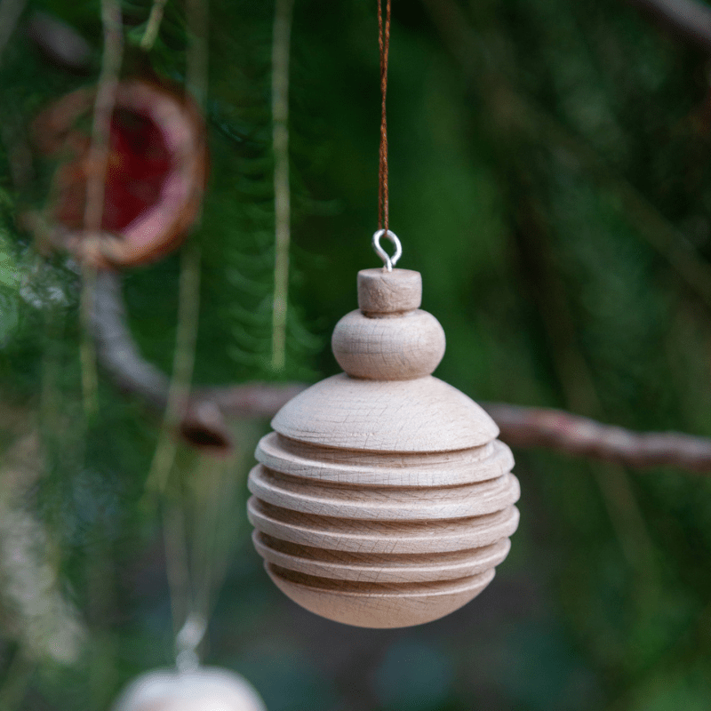 Elevate your holiday celebrations with our stunning Ringed Globe Ornament made from high-quality beech wood. This exquisite ornament, measuring 70mm x 60mm, features a unique ringed design that beautifully showcases the natural grain of the wood, adding a rustic yet sophisticated touch to your Christmas decor.