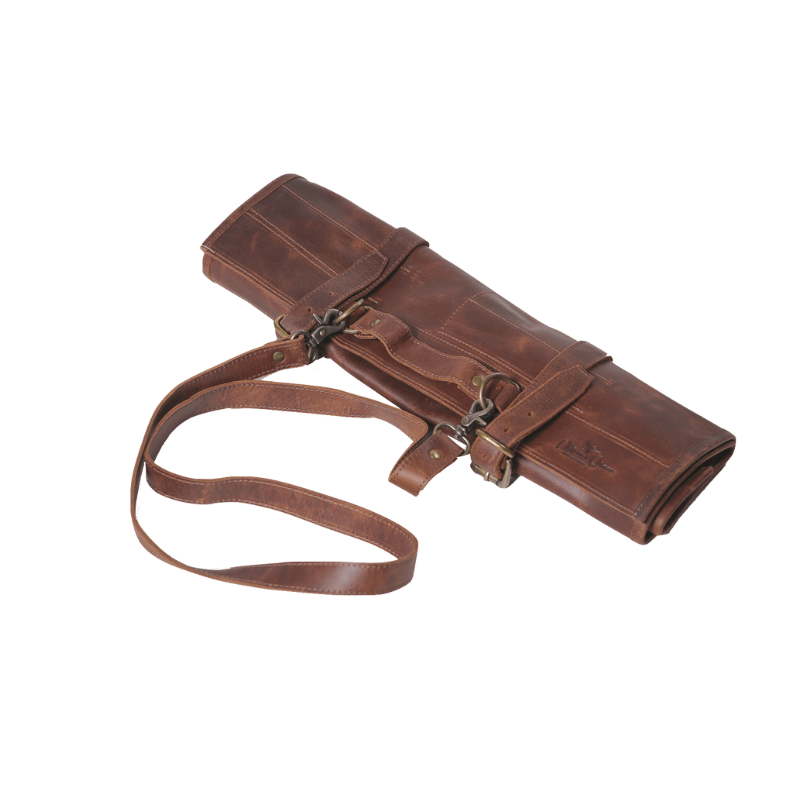 The Olivia 02 Leather Knife Bag can be used for knives, tools or brushes. This bag makes a perfect gift.